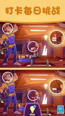 2、玩家将面对各种不同的挑战,需要在有限的内找出两张图片中所有不同的地方才能过关。