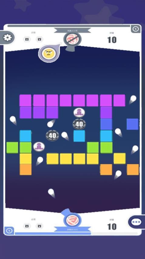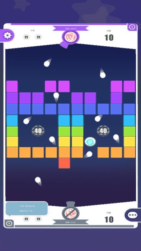 4、多颗白色的小弹球会穿越多块方块,最终回到原来的发射位置。