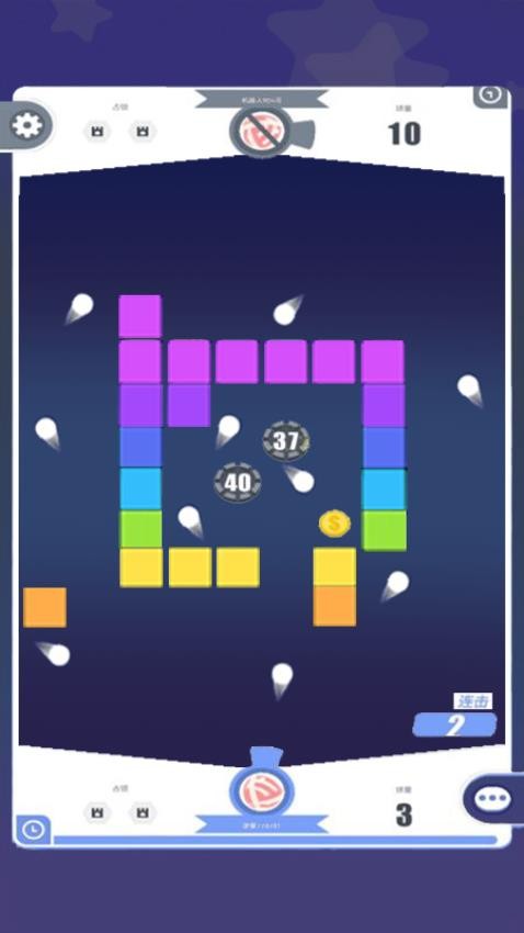1、被方块包围的数字小球只要被连续击中,玩家就能在连击的基础上得到成倍的分数,从而提高自己的得分。