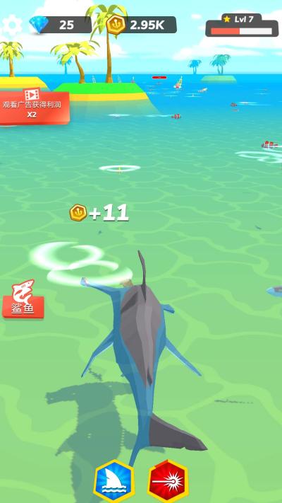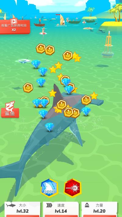 玩家不仅要注意捕食目标,还需警惕其他捕食者的威胁,合理利用环境进行躲避和反击是生存的关键。玩家还可以收集各种道具和装备,提升鲨鱼的能力,增加捕猎的成功率。
