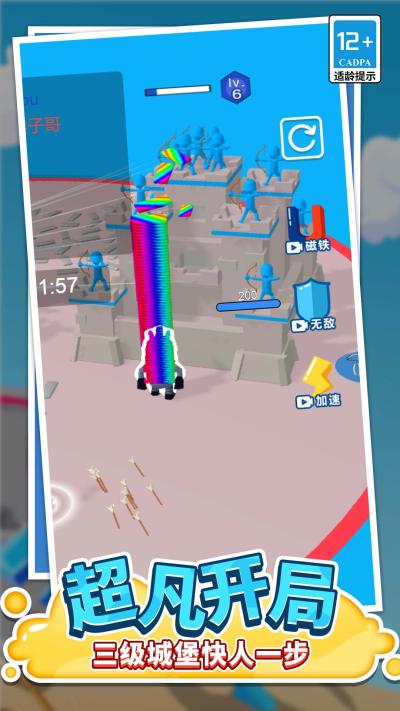 这款游戏的亮点在于其简单而富有趣味的操作方式。玩家只需通过简单的手指滑动,就可以轻松控制角色在场地中移动,抢夺砖块,建造城堡。游戏采用了精美的3D画面设计,带来了更为真实的游戏体验。每一处细节都经过精心打磨,营造出一个生动的游戏世界。游戏中还设置了多种关卡,难度逐渐增加,保证了玩家的挑战性与乐趣。