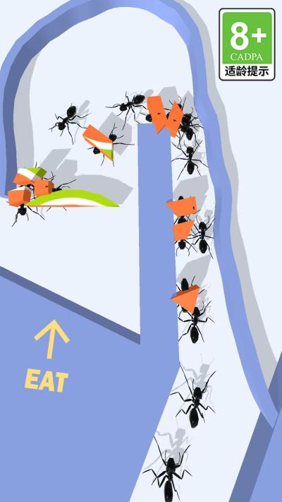 在这款充满趣味与挑战的玩家将化身为蚂蚁的指挥官,帮助它们在复杂的环境中寻找美食并将其安全带回蚁巢。游戏的操作简单易懂,适合各个年龄段的玩家,快来体验这段有趣的蚂蚁冒险旅程吧!