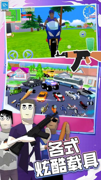 这款游戏的亮点在于其自由度极高的玩法和丰富的角色设定。玩家可以选择不同的角色,每个角色都有独特的技能和属性,适合不同的战斗风格。游戏中有多种多样的交通工具供玩家驾驶,包括摩托车、越野车和各种特殊车辆,让玩家在游戏世界中畅快驰骋。游戏的画面精美,音效出色,能够为玩家营造出身临其境的体验。