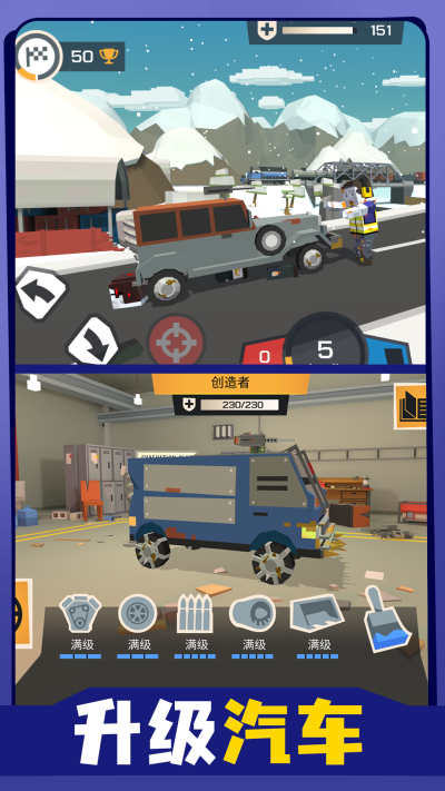 游戏的玩法主要分为驾驶、战斗和升级三个部分。玩家需要通过操控战车在关卡中穿梭,躲避障碍物并击败僵尸。在驾驶过程中,玩家可以利用战车的技能来加速、跳跃或发射武器,灵活应对各种突发情况。战斗方面,玩家需要合理利用武器和道具,选择最佳时机进行攻击,尽量减少受到的伤害。升级方面,玩家可以通过收集到的资源来提升战车的性能,解锁新的武器和技能,提升战斗效率。随着游戏的进行,关卡难度逐渐增加,玩家需要不断提升自己的驾驶技巧和战斗策略,才能在僵尸潮中生存下来。