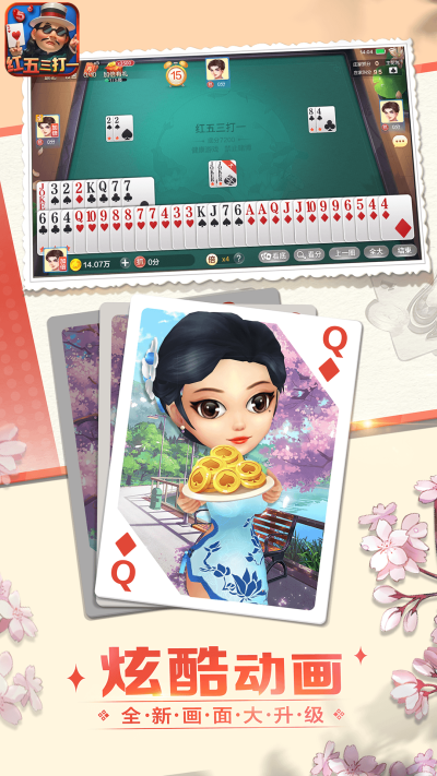 红五三打一的玩法简单易懂,适合各类玩家。游戏通常由四名玩家进行,分为两队进行对抗。每位玩家手中会发到一定数量的牌,目标是通过出牌的策略和技巧,将手中的牌尽快打出。游戏中有多种策略可供选择,玩家需要根据场上的牌局变化灵活应对。除了基本的出牌规则,游戏还引入了许多有趣的元素,炸弹、顺子等特殊牌型,使得游戏的策略性和趣味性大大增强。玩家不仅要考虑自己的牌型,还需要观察对手的出牌情况,制定相应的策略,以便在对战中取得胜利。