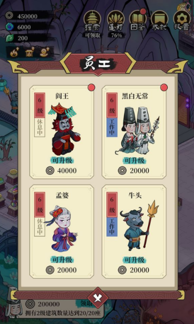 这款游戏的亮点在于其独特的题材和丰富的玩法。游戏以中国古代神话为背景,玩家将见到许多耳熟能详的神话人物,如阎罗王、孟婆等,带来浓厚的文化氛围。玩家可以自由建造和升级各种设施建筑,包括鬼魂接待所、罪业净化所等,这些设施不仅能提升地府的运营效率,还能吸引更多的鬼魂前来。游戏中的管理系统非常细致,玩家需要合理安排资源,制定发展战略,才能让自己的地府蒸蒸日上。