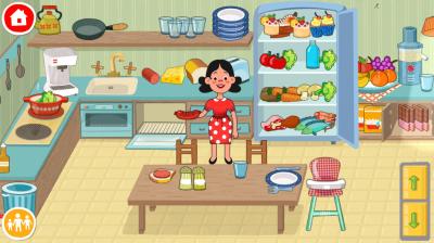 - **物品互动**:点击场景中的任何物品,都会出现一系列可执行的动作。点击冰箱,可以选择制作三明治、取出牛奶或清理过期食品。点击沙发,可以选择坐下休息、与家人聊天或跳上跳下。