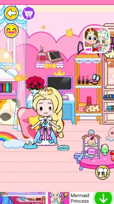 进入公主小镇世界,玩家将开启一段随心所欲的创造之旅。游戏伊始,在简洁的引导后,玩家便会解锁第一个基础场景。整个过程无需复杂操作,初始界面可能出现的提示窗口,只需点击关闭即可无障碍地进入创造核心。玩法主要围绕以下几个层面展开:首先是场景探索与布置。玩家可以自由切换于已解锁的各个场景之间。进入一个场景后,便可像布置自己的娃娃屋一样,利用场景中固有的以及通过探索获得的物品进行装饰。将家具摆放到合适的位置,为餐桌布置好餐具,这些行动本身就是在为故事搭建舞台。是角色互动与行为导演。这是游戏玩法的精髓所在。通过拖拽,玩家可以指挥角色完成各种动作:将食物拖到角色手中,她就会开始用餐;将书本拖给她,她便会坐下阅读;将两个角色拖到一起,他们就能开始对话或跳舞。玩家还可以操控多个角色,安排他们进行协同互动,举办一场需要多人参与的派对游戏。再者是故事编排与记录。玩家可以像导演一样,构思一连串的情节。先让公主在衣柜前挑选一件礼服(换装),让她去超市购买派对零食(购物互动),在城堡大厅布置好桌椅和蛋糕(场景布置),邀请朋友们入场,开始一场生日庆祝(多角色互动)。这个过程中的每一个环节都充满互动性与自主性。是自由的模式切换。玩家可以随时在布置模式和互动模式间切换,既可以专注于装点小镇的每一个角落,也可以沉浸于导演角色们的日常生活剧。这种玩法上的高度自由,确保了游戏体验的多样性和持久的新鲜感。游戏中诸如超市的场景,其海量商品不仅用于即时互动,也可作为长期装饰品来丰富场景细节,进一步拓展了创造的维度。