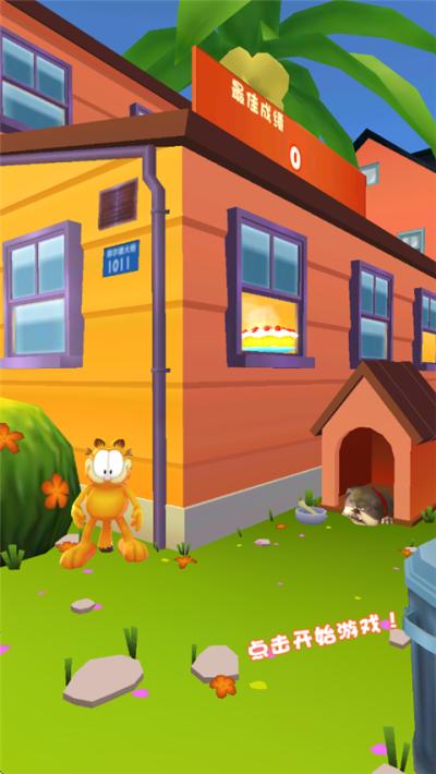 1. 开始冒险:玩家成功下载并进入游戏后,可以选择心仪的角色(初始为加菲猫),点击开始按钮,一场妙趣横生的跑酷冒险便拉开了序幕。加菲猫会自动向前奔跑,玩家的任务就是引导它安全地跑下去。