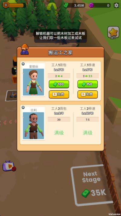 在具体的关卡挑战中,玩法更侧重于即时策略和路径优化。面对复杂地形和随时间出现的动态障碍(如滚落的巨石、突然涨水的溪流),玩家需要实时调整伐木工的作业路线和砍伐顺序,有时甚至需要临时改变运输路径,以确保在限定时间内完成关卡目标。这种动态的关卡设计,使得游戏过程绝不会枯燥,始终保持着紧张的策略博弈乐趣。