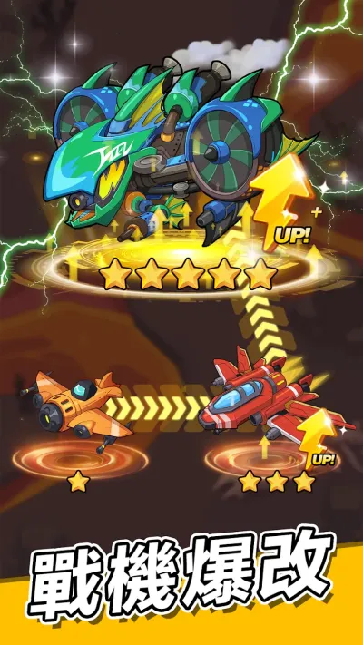 深度装备强化系统:游戏提供了多达数十种可升级的武器模块与防护组件,它们被归纳到六个可独立升级的组件槽位中。玩家可以通过任务奖励、关卡掉落等方式获取不同属性的核心模块,并将其镶嵌到战机上,从而直接改变战机的基础参数,如攻击力、射速、暴击率、护盾值、移动速度等。这种高度自定义的装备系统,让每位指挥官都能打造出专属于自己战术体系的终极战机。
