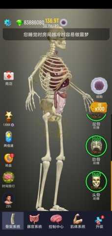 1. 科学严谨的构建逻辑:游戏严格遵循真实的人体发育顺序。玩家不能随意跳跃式发展,必须从构建坚固的骨骼框架开始,随后附着肌肉系统,铺设复杂的神经网络,再逐步安装心脏、肺、胃等各种精密器官,覆盖皮肤,完成整体。这种先骨架,后填充的逻辑链,模拟了生命形成的真实过程,极具条理性和规划性。
