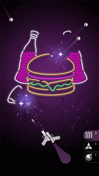 本作的亮点首先体现在其无与伦比的视听表现力上。视觉层面,游戏采用高对比度的霓虹色块与深色背景,营造出强烈的视觉冲击。当弹射物撞击霓虹灯管时,产生的并非简单的消失,而是伴随着粒子飞溅、光线折射与色彩晕染的华丽特效,仿佛在屏幕上绽放出一朵朵短暂的电子烟花,极具观赏性。听觉层面,背景音乐采用了节奏明快的电子乐,并与玩家的击碎动作紧密同步,每一次成功的碰撞都会触发一个清脆悦耳的音效,与音乐节拍完美融合,形成了强烈的正向反馈循环,极大地增强了操作的爽快感和沉浸感。