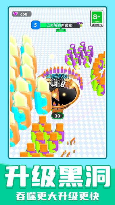 在快节奏的现代生活中,一款能够迅速带来欢乐与成就感的游戏显得尤为珍贵。进化黑洞正是一款作品,它将吞噬进化的核心乐趣与轻松竞技的体验完美融合,为玩家打造了一个色彩斑斓、充满策略与变数的微观竞技场。你无需背负沉重的剧情或复杂的操作,只需滑动指尖,便能操控一个憨态可掬的黑洞,开启一场关于成长与竞争的奇妙冒险。无论是通勤途中还是工作间隙,它都能为你注入片刻的轻松与刺激。