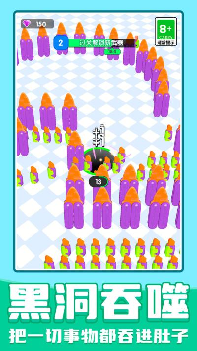 进化黑洞是一款以物理碰撞和实时竞技为核心的休闲手游。游戏构筑了一个明亮欢快的3D卡通世界,玩家所扮演的并非传统意义上的英雄或战士,而是一个拥有无限吞噬潜能的神秘黑洞。游戏的主舞台是一个边界清晰的圆形竞技场,场地上散落着当前流行的趣味物品——萝卜刀,它们正是黑洞成长的能量源泉。游戏的核心目标简洁而富有挑战性:通过滑动屏幕控制黑洞移动,吞噬尽可能多的萝卜刀来扩大自身体积,并利用体型优势将其他竞争对手撞击出场地边界,从而成为场上的幸存者。这种大鱼吃小鱼的经典范式,被赋予了全新的视觉表现和操作手感,使得每局游戏都成为一次充满未知与惊喜的旅程。