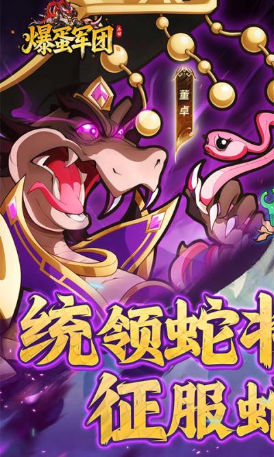 爆蛋军团0.1折是一款以三国为背景的创新型卡牌策略手游。游戏最大的特色在于其彻底颠覆了传统三国题材的严肃与厚重感,将关羽、赵云、曹操等家喻户晓的历史名将,全部重塑为拥有蛇形身材的Q萌形象,这种诙谐幽默的美术风格令人耳目一新。玩家将扮演一名军团统帅,通过招募、收集这些独具特色的武将卡牌,并依据他们的技能与属性进行策略性的组合搭配,从而打造出一支战无不胜的爆蛋军团。游戏内容兼顾深度与趣味,既有还原真实三国战役、考验玩家布阵与策略的烧脑关卡,也提供了能够随时上线、轻松释放压力的爽快战斗模式,满足了不同玩家的游戏需求。