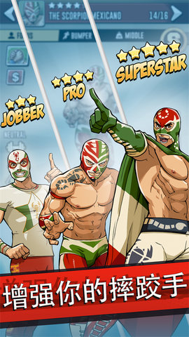 肌肉力量弹弓摔跤的特色在于其深度与广度并存的游戏内容。在角色养成方面,游戏提供了清晰且多维的成长路径。从基础的力量、速度训练,到解锁酷炫的高级抛投技,完整模拟了一位摔跤明星从默默无闻到声名鹊起的职业生涯。养成维度丰富,涉及训练提升基础属性、装备强化以及关键的升星突破,足以满足硬核养成爱好者的深度需求。在策略性上,游戏提供了广阔的战术搭配空间。玩家需要根据对手的队伍构成和战斗风格,灵活调整己方的出战阵容和开场战术,这使得每一场对战都如同一场脑力博弈。游戏模式方面,单人挑战模式包含了大量设计巧妙的关卡,每一关都可能设有不同的胜利条件或限制,挑战玩家的应变能力;而实时玩家对战联赛则构建了一个持续且充满竞争的PVP环境,鼓励玩家不断精进技术、优化阵容,以冲击更高的排名,获取丰厚奖励。