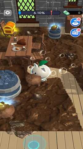 游戏的核心玩法循环清晰而富有吸引力。进入关卡后,玩家需要通过滑动屏幕来控制史莱姆在场景中移动。史莱姆会自动吸附所经之处的污垢和垃圾,将其吞入体内。屏幕上会清晰显示当前清洁进度和目标。玩家需要仔细观察场景,因为污渍可能藏在角落、高处或是需要破解简单机关才能到达的地方。某些垃圾被栅栏挡住,需要先找到并清理掉控制栅栏的电源污渍;有些粘性极强的污渍需要史莱姆反复滚动才能清除干净。完成一个区域的所有清洁目标后,通常需要将史莱姆引导至关卡中的沐浴站进行清洗,将体内收集的污垢彻底冲刷干净,才能以清爽的状态迎接下一个挑战,这一设定也增添了拟真感和趣味性。关卡挑战分为普通计时挑战、完美清洁挑战(要求无遗漏)以及合作挑战等多种模式。胜利后获得的金币和星星,可用于主城的商店和实验室。在商店,玩家可以购买新的清洁设备配件或一次性助力道具;在实验室,则可以消耗资源对史莱姆进行属性升级或触发进化,解锁新形态。游戏还设有每日任务、挑战活动和赛季通行证等系统,提供持续的目标和丰厚的额外奖励,确保玩家每天都有新的内容可探索。