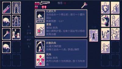 霰弹枪国王:终局将死的特色鲜明而深刻,使其在独立游戏中脱颖而出。其一,是动态且富有学习曲线的敌人AI。敌方棋子并非被动等待,它们会主动在其移动规则内寻找并追杀国王,且随着关卡推进,会获得诸如死后分裂、远程射击等特殊能力,让战局始终保持新鲜感和压迫感。其二,是体贴入微的难度调节设计。游戏内置了每回合两次的悔棋提示机会,允许玩家回溯一步操作,这极大地降低了因一时疏忽导致的挫败感,鼓励玩家进行更大胆的策略尝试和深度学习,而非单纯考验记忆。其三,是充满深度的风险与收益成长系统。通关后获得的永久性强化效果,不仅作用于国王自身,有时也会强化敌人。这种设计迫使玩家在每一次升级选择时都必须慎重权衡,是追求更强的火力,还是应对更棘手的局面,策略选择更具分量。