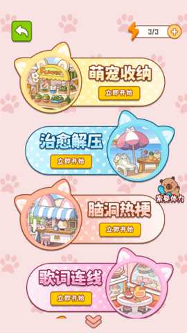 游戏的玩法层次清晰,乐趣层层递进。基础玩法是经典的场景寻物:在限定时间内,根据提示列表,在纷繁复杂的画面中找到所有目标物品即可过关。随着关卡推进,单纯的寻找会逐步升级为梗谜题驱动式寻找,即需要先理解场景中基于热梗设计的幽默情节,才能准确推断出需要寻找的物品是什么。栓Q场景可能暗示需要找到让萌宠表达感谢的物件。除了主线找茬关卡,特色小游戏模式构成了玩法的另一支柱。在快乐贩卖机模式中,玩家需要扮演收纳大师,将五花八门的商品整齐地归位到贩卖机中,考验空间规划和整理能力;在装修大师模式中,则可以发挥创意,按照自己的喜好装饰萌宠的小屋。这些模式与主线玩法相辅相成,共同构建了一个丰富、持久且充满惊喜的萌宠解谜宇宙。
