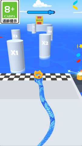 蛇蛇跑酷的亮点在于其将简单规则与丰富内容进行了完美结合,打造出令人欲罢不能的游戏体验。其操作极度简化,仅通过直观的左右滑动屏幕即可精准控制蛇蛇的移动方向,零门槛的设计让任何年龄段的玩家都能瞬间融入游戏。游戏的成长反馈极其爽快且可视化。赛道上布满了种类繁多的食物,从闪烁的小豆子到造型各异的小蛇玩偶,吞噬它们后蛇蛇的体型会实时、显著地增长,这种肉眼可见的进步给玩家带来了强烈的即时满足感。游戏的挑战与奖励体系设计精妙。玩家不仅要追求吃得多,更要跑得巧,如何在保证庞大体型安全通过狭窄区域的规划最优路径以最快速度抵达终点,成为了游戏策略性的核心。成功抵达终点后,蛇蛇甚至能上演抱住终点杆华丽环绕一周的精彩表演,将成就感推向高潮。