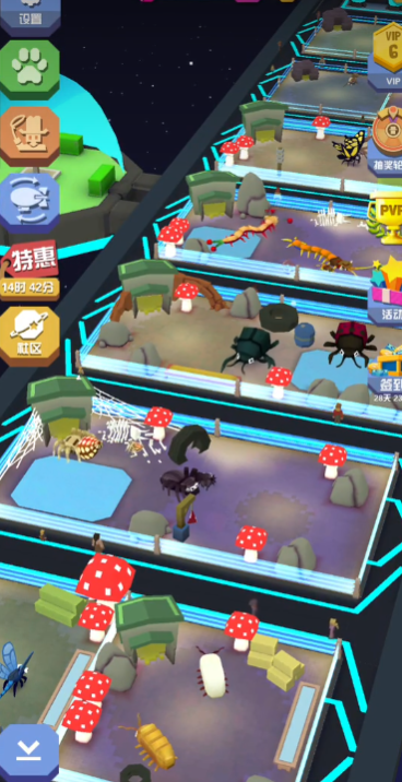 疯狂动物园的特色在于其深度的策略性融合。它绝非一款单纯的无脑跑酷游戏。其一,经济系统策略显著:如优先升级高稀有度动物所在的栖息地,能高效提升飞船整体等级,从而增加游客流量和门票收入,形成良性循环。这种将跑酷收益直接转化为经营资本的设计,让每次奔跑都意义非凡。其二,动物骑乘策略至关重要。针对不同地图的地形特点,选择合适的首发动物及骑乘顺序是一门学问。使用加速型动物可以快速穿越平坦地带,而选择跳跃能力强的动物则能轻松应对复杂地形。明智的动物选择能有效延长单局时间,是获取高额收益的基础。其三,任务系统丰富。游戏内置了大量的日常任务、挑战任务和限时活动,这些任务不仅提供了明确的目标指引,其奖励也往往是快速获取金币、钻石等关键资源的重要途径,引导玩家全方位地体验游戏的各个系统。