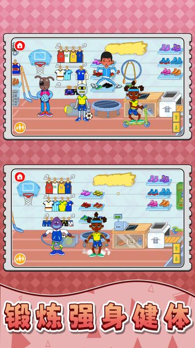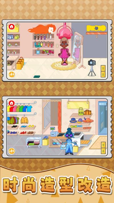 2. 全景式自由探索:游戏提供了一张完整的城市地图,购物中心、美发厅、主题餐厅、专属超市等场景不仅外观精致,内部更是细节满满,均可自由出入和深入探索。每个角落都可能藏着隐藏道具或触发意想不到的趣味小活动。