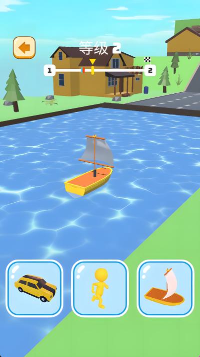 全民向前冲冲冲的玩法清晰易懂但极具深度。游戏操作以触屏为主,屏幕左下角设有左右方向键控制载具移动,右下角则排列着多个载具形态的切换按钮。比赛开始后,玩家需要驾驶初始形态(通常是汽车)在赛道上飞驰。**核心操作循环是观察-决策-变形-操控**:当赛道路面颜色或材质发生变化,预示着地形即将改变时,玩家需迅速点击对应的形态按钮(如进入水域前点击船只图标),实现载具的瞬间变形,以适应新地形。在行驶过程中,还需灵活躲避移动的障碍物、利用跳跃板飞跃断桥、精准驶过加速带以获得速度爆发。除了竞速本身,游戏还包含了有趣的资源收集环节,在商店界面控制角色搬运金币,用于后续的载具升级。升级系统直观明了,玩家进入改装界面,可以选择引擎、涡轮、悬挂、变形速度等不同项目进行强化,每一项升级都能直观地提升载具在特定地形或全局的表现。这种将紧张刺激的实时操作与富有成就感的长期养成相结合的模式,构成了游戏玩法的完美闭环。