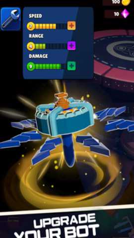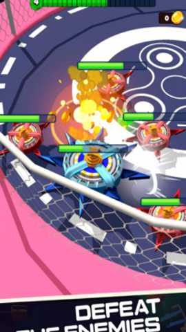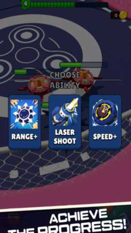 本作的亮点首先体现在其革命性的双轴旋转操控系统上。玩家的陀螺机器人能够在水平与垂直轴上进行高速旋转,这不仅是一种视觉上的炫酷表现,更是战斗机制的核心。玩家可以通过精准操控,利用旋转产生的强大离心力来显著增强刀锋的切割伤害,使得每一次攻击都蕴含着力学之美。游戏的移动方式别具一格,采用倾斜设备或滑动屏幕来调整陀螺的移动方向,这种直观且需要细微操控的方式,极大地提升了游戏的沉浸感和操作上限,要求玩家在电光石火间做出反应。动态竞技场的设计堪称点睛之笔。场地中散布着弹射板、加速带、陷阱区等多种互动元素,高手玩家可以巧妙利用这些环境因素,实现反弹攻击、地形杀或创造出华丽的技能连击,往往能在绝境中逆转战局,将战斗的乐趣与策略深度提升到一个新的层次。