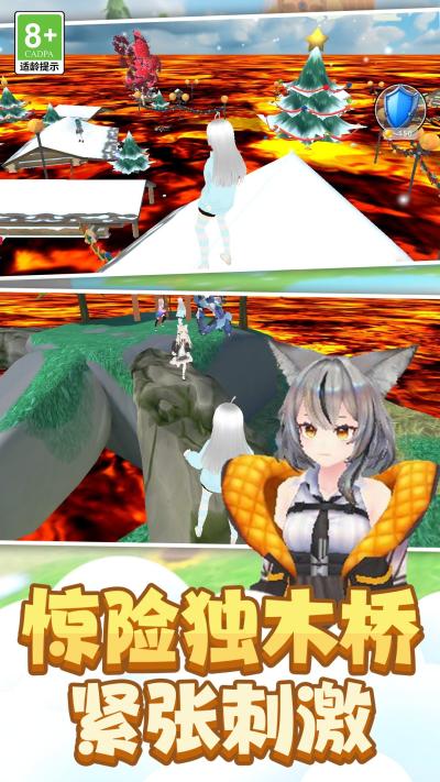 游戏的玩法核心围绕生存竞速与策略互动展开。进入游戏后,玩家将置身于一个逐渐被岩浆吞噬的封闭场景中。基础操作是通过虚拟摇杆控制公主移动,并结合跳跃键来越过障碍。核心生存法则是:必须不断向前移动,一旦速度过慢,就会被屏幕边缘蔓延的岩浆吞噬。玩法层面主要分为三个维度:首先是环境挑战,玩家需要在梦幻城堡、翠绿草地等多变3D地形中穿梭,应对起伏平台和狭窄通道的考验。是玩家对抗,这是游戏的精髓所在。你可以通过灵活的走位躲避其他玩家的飞踢,也可以主动出击,看准时机将对手踢出安全平台,这种实时互动充满了博弈的乐趣。是资源策略,奔跑途中散落的金币务必尽力收集,它们是你前往地图上的补给站或商店,兑换无敌护盾(抵御一次伤害)或能量饮料(短时速度爆发)等关键道具的唯一货币。如何分配有限的奔跑时间用于收集资源还是全力逃亡,是每时每刻都需要做出的战略选择。