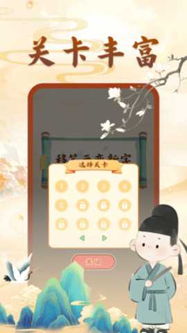 动一笔变新字拥有诸多鲜明的特色,使其在同类益智游戏中脱颖而出。其一,是**海量且精心设计的关卡系统**。游戏内置了成百上千个关卡,每个关卡都是一个独立的汉字谜题,确保了游戏内容的持久性和新鲜感。其二,**自由灵活的关卡选择机制**。玩家并非被强制线性推进,而是可以根据自身水平与兴趣,自由选择任意关卡进行挑战,这种开放式的设计尊重了玩家的个体差异,让每个人都能找到适合自己的节奏。其三,**人性化的复活与提示功能**。当玩家在某关卡陷入困境时,游戏提供了贴心的复活机会,允许玩家在本关重新尝试,避免了因一次失败而全盘重来的挫败感。适度的提示系统能在玩家百思不得其解时提供关键线索,引导思考而非直接给出答案。其四,**纯净无干扰的游戏环境**。游戏专注于核心玩法,界面清爽,没有冗余复杂的系统或强制性的广告弹窗,让玩家能够全身心沉浸于汉字解谜的纯粹乐趣之中。