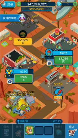 点击暴富是一款以卡通风格呈现的休闲放置类模拟经营游戏。游戏将玩家置于一位初创企业家的角色,从经营一家小小的店铺起步,通过持续不断的点击操作积累初始资本,进而解锁并升级更多样化的建筑与商业设施,最终打造出一个庞大而繁荣的商业帝国。游戏的核心循环清晰明了:点击产生收益,收益用于建造与升级,升级带来更高效的自动收益,从而形成良性循环。其背景设定在一个色彩明快、充满活力的幻想都市中,角色造型夸张可爱,建筑动画生动流畅,整体营造出一种积极向上、轻松解压的游戏氛围。无论是追求快速成长的硬核玩家,还是只想偶尔上线收个菜的休闲玩家,都能在这款游戏中找到属于自己的节奏和乐趣,体验从一砖一瓦到高楼林立的完整商业传奇。