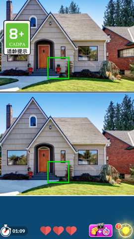 第二个核心模块是极限找茬挑战。在这一模式中,屏幕上下会并排显示两张看似完全相同的图片。玩家需要火眼金睛,找出隐藏在的七处细微差异。这些差异可能体现在颜色深浅、形状轮廓、物体大小、元素位置、纹理方向乃至阴影细节等方方面面。玩家需要通过仔细观察,点击图片上有差异的部位进行标记。此模式极度考验玩家的细节观察力、耐心和对比分析能力,任何微小的疏忽都可能导致挑战失败。两种玩法交替或结合出现,构成了游戏丰富的主线内容。游戏还设有无压力练习模式和定期更新的挑战活动,让玩家在巩固基础的也能体验竞技的乐趣。