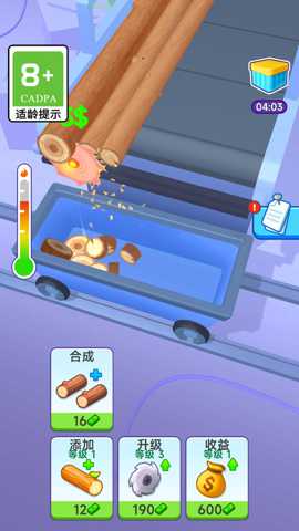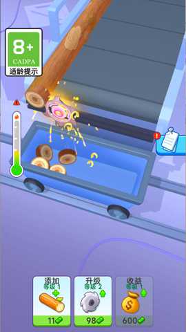 本作最引人注目的亮点在于其极致的视听反馈与解压体验。当刀具流畅地划过木材,木屑如丝带般连续卷出时,那种顺滑的动画效果和真实的音效,本身就构成了一种强烈的视觉享受。而将凝聚好的木屑卷发射出去,撞击、摧毁一连串障碍物时,看着目标应声倒塌、碎片飞溅,仿佛欣赏一场精心设计的多米诺骨牌连锁表演,带来无与伦比的舒适感与成就感,有效缓解日常压力。游戏构建了一个从零开始的财富传奇。玩家从处理最普通的木材起步,通过每一次成功的削切与破坏积累初始资本。随着金币的增多,可以解锁更多功能的刀具、更具价值的木材类型以及各种辅助道具,从而进入创造-收获-升级-挑战更高收益的良性成长循环,满足玩家对经营与成长的深层渴望。这种将手工劳作直接转化为经济收益的设定,简单直接且充满正向激励。
