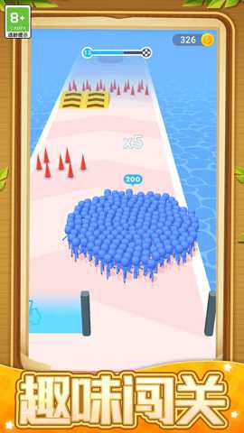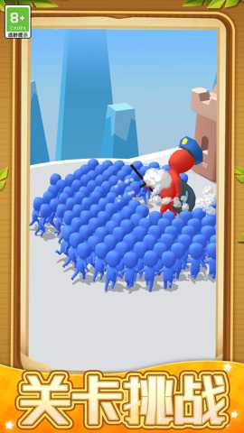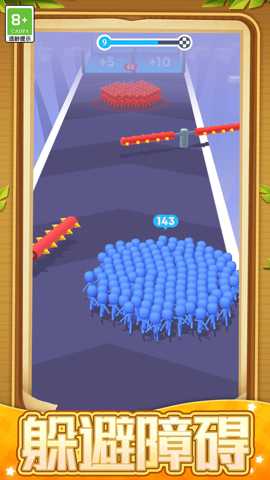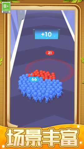游戏的操作直观而流畅,玩家通过触摸屏幕控制角色的所有动作:轻触或上划实现跳跃,下划进行滑行,有时可能需要组合操作来完成翻滚等特技,以规避连续或低矮的障碍。核心玩法循环清晰:开局后,控制你的小人全力向前奔驰,首要任务是尽可能多地吸收沿途的蓝色友方小人,扩大军团规模。当遭遇红色敌对小人时,你将自动与之发生碰撞。此时,双方剩余的数量将直接决定胜负——若我方人数占优,则将击溃对方并继续前进;若人数劣势,则可能损失惨重甚至直接失败。玩法精髓在于择路:是冒险走一条小人密集但陷阱众多的捷径,还是选择更安全但收益一般的常规路径?是在敌人面前暂时退避,集结更多力量后再回头碾压,还是抓住其阵型分散的瞬间果断出击?这些决策都需在电光石火间做出。完成每日挑战、参与特殊赛事、在无尽模式中冲击最远距离和最高分数,都是游戏玩法的重要组成部分,确保了游戏内容的长期可玩性。