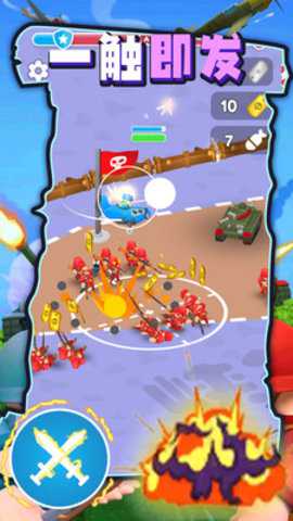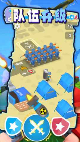 无敌坦克砰砰砰的核心体验在于其沉浸式的指挥官扮演与动态的战场扩张。游戏伊始,玩家便肩负起重建与壮大军团的使命。第一步便是收集散落在战场各处的铭牌——这些不仅是荣誉的象征,更是最基础的资源。利用初始的铭牌,玩家可以建立起第一顶营帐,随着营帐的落成,一队队精锐的蓝色士兵将应召而出,成为您麾下的第一批勇士。这从无到有的过程,充满了建设的成就感。随后,战火点燃,通过简单的点击操作,您即可命令士兵向敌方阵地发起冲锋,在激烈的交火中击溃敌人,从而掠夺更多的铭牌与宝贵资源。这套收集-建设-征战-再收集的精炼循环,构成了游戏最核心的驱动逻辑,让每一步成长都清晰可见,每一次胜利都带来切实的回报,从而建立起强大且战无不胜的钢铁雄师。