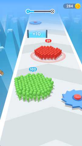 游戏的玩法围绕收集、躲避、壮大、突破这一循环展开。操作上,玩家通过手指在屏幕左右滑动,指挥你的小人队伍在横向的多条街道间切换,以避开行驶的车辆和固定的路障。沿途闪烁着光芒的同伴是队伍扩张的关键,尽可能多地收集他们。面对越来越复杂的路况,如出现的多车道车流、周期性开合的机关门,玩家需要预判移动轨迹,计算整个队伍安全通过的时机。利用好道具是通关的高级技巧,在关键时刻使用加速道具可以带领队伍快速冲过危险区域,而使用红绿灯道具则能掌控路口交通,实现安全转向。在后期关卡中,面对无法直接穿越的巨型障碍或追逐者,则需要运用分兵策略,牺牲一小部分成员来吸引注意力,保全大部队。游戏过程中积累的金币可用于永久性提升队伍的初始人数、移动速度,或是在商店中购买新的小兵颜色和装扮,让你打造的队伍真正独一无二。
