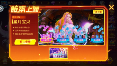 游戏的玩法层次分明,从日常捕捞到挑战BOSS,再到参与活动,内容环环相扣。基础玩法是经典的捕鱼射击,玩家需掌握不同鱼种的游动规律与价值,合理分配炮弹,在普通鱼群中积累资本。而玩法的精髓则在于BOSS战与奇珍异兽系统。游戏中会随机刷新如魅夜九尾狐、猩猩老板、祥瑞福狮等极具特色的强力BOSS,击败它们不仅是财富的飞跃——能获得基础的高额倍率奖励,更会触发如宝藏转盘或特殊小游戏等额外惊喜,有时甚至能一举引爆全服彩金池,体验一炮过亿、名动全服的巅峰爽感。