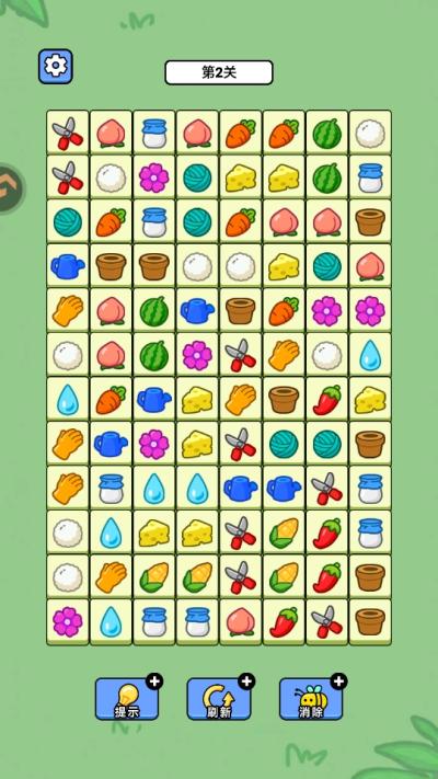 游戏的玩法清晰易懂但深度十足。玩家进入关卡后,面对的是一个布满各种图案的棋盘。核心操作是:仔细观察,寻找棋盘上两个完全相同的图案,这两个图案之间可以用一条直线连接,且这条直线最多只能转折两次(即路径不超过两个拐点)。一旦确认,点击这两个图案,它们便会成功消除,并为你赢得分数与时间奖励。随着消除的进行,上方的图案会因重力掉落填补空位,可能形成新的可消除组合,从而引发激动人心的连锁反应。玩家的目标是在规定时间内,将关卡内的所有图案消除干净。成功通关后,将获得丰厚的金币、道具等奖励,并解锁下一个更具挑战性的关卡。从第二关开始,难度便会逐步提升,图案种类更加繁杂,布局更为刁钻,障碍物也开始出现。此时,仅仅依靠眼疾手快已不够,更需要玩家运用智慧,全局规划消除顺序,并善用重排或炸弹等道具来突破僵局。每一次成功的全局消除,都是一次对观察力与思维能力的完美考验。
