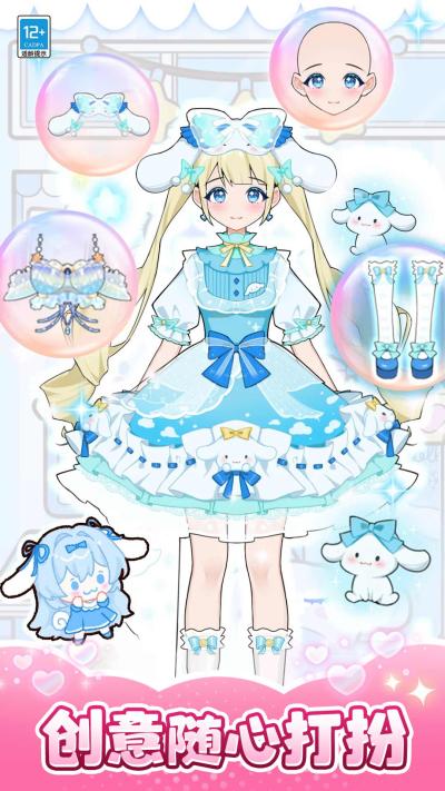 2. **海量服饰自由搭配**:这是游戏最核心的乐趣所在。玩家进入衣橱界面,可以像打理真实衣柜一样,为角色选择上衣、下装、连衣裙、外套、鞋子以及项链、耳环、手链、包包等各类饰品。所有单品均可进行无限制混搭,玩家可以大胆尝试不同风格的碰撞,无论是将公主蓬蓬裙与机车皮靴组合,还是用简约T恤搭配华丽珠宝,创造出专属于自己的时尚法则。