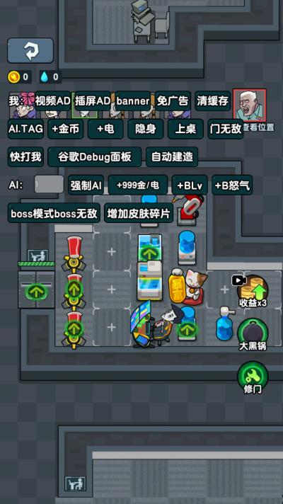 本作最引人注目的亮点在于其颠覆性的塔防+职场生存玩法。游戏并非让玩家在工位上无休止地点击,而是将办公室转化为一个需要精心布防的战场。躺平不再是消极怠工,而是一种积蓄力量、构筑防线的战略选择。玩家需要关上房门,在自己的办公室隔间内,建造和升级各种颇具职场特色的炮台(文件轰炸机、咖啡因连射器、报告导弹塔等),以抵挡来自走廊、心怀不满的老板与其他竞争者的疯狂进攻。另一个核心亮点是高度的策略自由度与目标驱动感。点击老板头像可以实时查看威胁的方位与状态,要求玩家必须灵活调整防御布局,而非固守一成不变的阵型。游戏的目标清晰而刺激:在资源管理与实时防御的双重压力下,尽可能地活到。这种将职场压力转化为具象化怪物进攻的设计,不仅极具幽默感和讽刺意味,也使得游戏过程紧张刺激,充满变数。