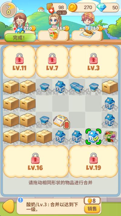 游戏的玩法丰富而富有层次,既易于上手又极具策略深度。核心操作围绕合并与经营展开。在合并方面,玩家需要在货架或空地上,将两个相同等级的物品拖动到一起,合成更高级的商品。从最初级的面粉、咖啡豆,到最终豪华的千层蛋糕和特调饮品,合成链丰富且直观。在经营方面,玩家需要合理布局店铺,升级厨房设备(如优先升级高效烤箱以处理多份订单),并及时完成顾客头顶气泡中出现的订单。订单需求以不同颜色标识紧急程度,红色标签代表急需,需优先处理以防顾客失望离去。随着等级提升,可以解锁并建造新的店铺,每家店铺都拥有独立的装饰升级树和专属的小剧情。高级玩法强调资源规划与时机把握,:始终在货架上预留至少2x2的空格,为合成高等级物品预留操作空间,避免被低级物品填满而阻碍发展;在小镇庆典等限时活动开启前,有预见性地囤积基础原材料,以从容应对活动期间爆发式的大宗采购需求,最大化活动收益。