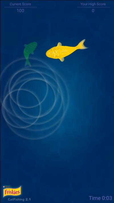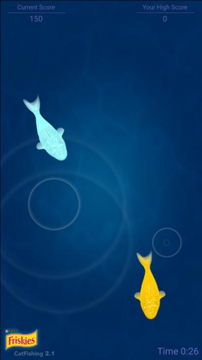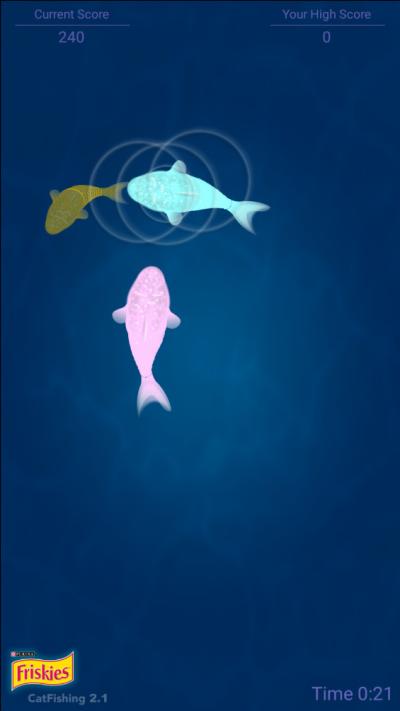Catfishing的玩法设计极致简单,最大化降低了人和猫的使用门槛。主人需要将安装好游戏的移动设备放置在一个稳定、平坦且猫咪容易接近的表面上,地板或低矮的茶几。点击屏幕上的开始按钮,游戏便正式启动,栩栩如生的水下场景和游动的鱼群即刻呈现。主人可以轻柔地引导猫咪注意到屏幕,但通常猫咪会被自动吸引。接下来,就是观察猫咪自然反应的奇妙时刻:猫咪会本能地伸出爪子,试图拍打或捕捉屏幕上穿梭的鱼儿。每当猫咪的爪子成功触碰到虚拟鱼时,游戏会通过加分和特定的视觉效果(如水波纹扩散)给予即时反馈,并伴随悦耳的提示音。主人可以根据猫咪的表现,在游戏设置中灵活调整难度级别。游戏结束后,可以进入历史记录页面,查看本次及以往的得分,纵向对比了解猫咪的参与热情和捕鱼技能是否有进步。整个过程轻松、有趣,不仅为猫咪提供了模拟狩猎的快乐,也为主人带来了观察和陪伴的乐趣。