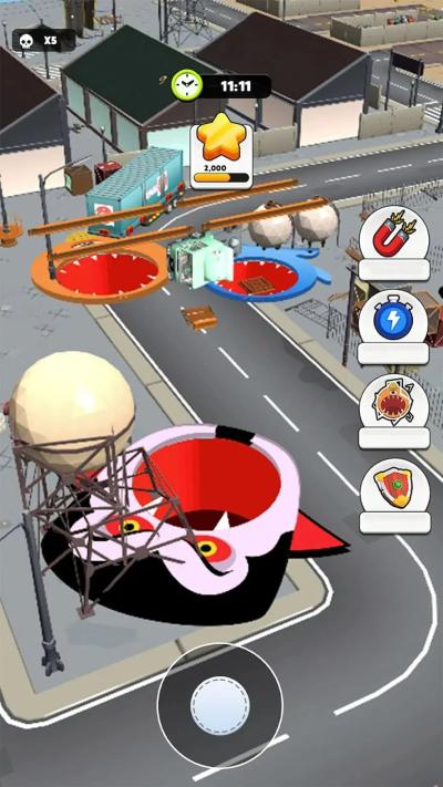 策略层面则贯穿游戏始终。开局阶段应采用猥琐发育流:避开中心混战区域,专注于地图边缘或小巷中密集的小型物体(路灯、长椅、行人),快速完成初始积累。进入中期,则需转向滚雪球策略:主动寻找车辆聚集区、停车场等高价值目标点,实现体量的飞跃式增长,时刻警惕来自更大黑洞的威胁。到了后期,成为庞然大物后,则需要利用体型优势,掌控地图关键资源点,并通过围追堵截清理其他竞争者。利用地图中的障碍物分割对手、在混战中渔翁得利等高级策略,更是高手必备的素养。