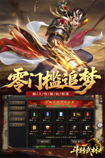 斗转武林至尊版拥有众多直击玩家痛点的特色设计,打造一个无套路、真福利的绿色游戏环境。其一,游戏主打无首充、无套路、无强制消费,并免费向所有玩家开放自动拾取和自动回收功能,极大减轻了重复操作负担,让玩家能全心投入激情战斗。其二,游戏在保留打宝、PK、攻沙三大经典支柱的融入了夺宝奇兵、通天塔、全新大陆等丰富玩法,经典与创新内容相辅相成,持续提供新鲜感。其三,游戏内设有大量超变专属神器、炫酷时装和极品称号,且全部通过打怪爆出,刀刀暴击、刀刀切割的快感配合全开的爆率,带来了前所未有的爽快体验。其四,游戏甚至推出了打怪领真充的良心活动,让玩家在享受游戏乐趣的还能获得实实在在的福利,真正做到了与玩家共赢。