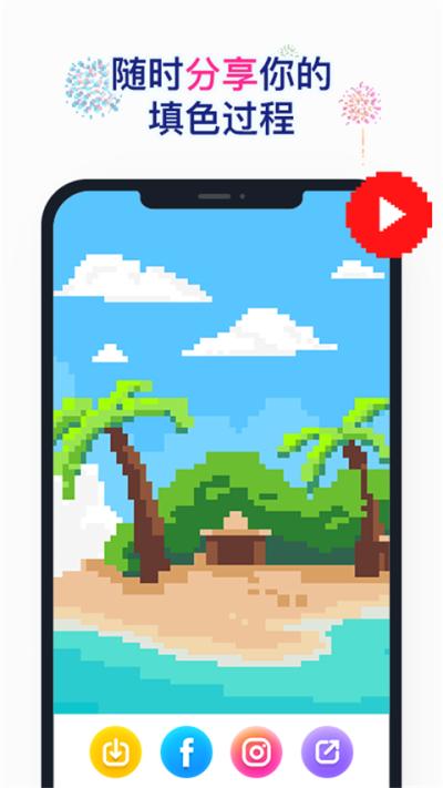 Nopix草莓涂涂的亮点在于它将简单的填色体验做到了极致丰富与人性化。其整体美术采用了柔和可爱的像素风格,搭配舒缓放松的背景音乐与音效,共同营造出一个令人全然放松的减压环境。游戏在操作上充分考虑了便捷性,支持单指精准点击与双指自由缩放画布,长按更能实现大范围的连续快速上色,让填色过程流畅而高效。再者,其强大的社交分享功能是一大特色,玩家不仅可以将完成的作品保存为高清图片,更能将整个填色过程录制并生成为一段生动的动态视频,一键即可分享至微信、抖音等主流社交平台,生动地展示从无到有的创作奇迹,收获朋友的点赞与惊叹。