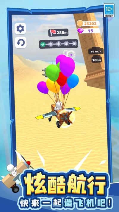 飞机组装完毕后,点击进入试飞关卡。玩家需要将飞机拖到弹射线上,通过滑动屏幕来蓄力,释放,将飞机弹射出去。成功起飞后,游戏进入飞行操控阶段。玩家可以通过点击屏幕两侧来微调飞机的俯仰角度,以获取最佳滑翔状态,需要灵活避开空中随机出现的障碍物,如气球、飞鸟或云层。关卡的目标通常是达到指定的飞行距离或高度。飞行过程中,飞机会不断收集空中散落的金币和钻石。落地后,系统会根据总飞行距离结算奖励。