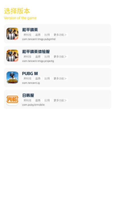 1. 精准匹配与一键优化: 软件首要解决的是用户不知如何下手的困惑。启动应用后,用户首先需要在首页选择当前运行的游戏(如和平精英)及其对应的服务器版本(如全球服、亚服等)。这一步骤确保了后续所有的画质参数调整都精准匹配游戏版本,避免了因配置错误导致的游戏异常。选定后,系统会自动列出当前设备可支持优化的核心画质选项,用户无需逐一研究晦涩的参数,只需点击底部的【一键解锁】按钮,即可让所有经过优化的设置立即生效,无需重启游戏,真正实现了开箱即用的便捷体验。