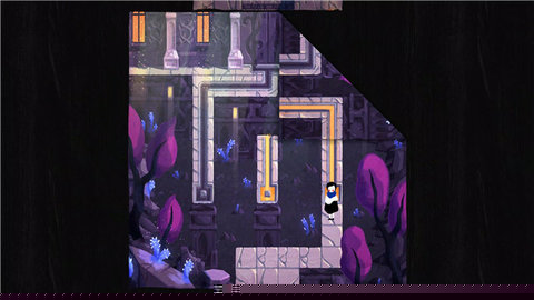 游戏玩法围绕折叠解谜核心层层展开。初期关卡引导玩家熟悉基本的折叠操作,将纸张对折以搭建桥梁。随着流程深入,谜题设计愈发精妙复杂,引入了多样化的互动机制来丰富挑战性。玩家会遇到编号的石板,需要按特定顺序激活;操作按压式开关来触发远方机关;推动可移动的滑块来为折叠创造支点;调整旋转平台的角度以对齐路径;甚至需要利用光线反射原理来引导光束,照亮关键区域。每一个谜题都像是一个精巧的立体机关,需要玩家仔细观察环境、分析折痕、并发挥空间想象力。解谜的过程并非孤立的智力挑战始终与叙事节奏同步。解开一个阻碍前进的复杂折叠,往往意味着主角克服了一段心结,玩家在获得解谜成就感的也收获了情感上的共鸣与慰藉。