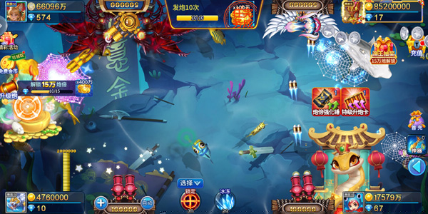 游戏的玩法围绕射击捕获与资源成长两大核心展开,层次分明且富有策略性。在基础操作层面,玩家需掌握炮倍调节的艺术,根据自身金币储量与目标鱼的价值,在几百倍到上万倍之间灵活选择炮弹威力。智能的锁定功能可让炮弹无视杂鱼直击BOSS要害,而自动射击则为清理鱼群提供了便利,解放玩家双手。在进阶策略层面,玩家需要敏锐洞察战场,优先集火进入觉醒状态的BOSS,以获取超额回报。积极参与各类活动,积累资源用于神器与荣耀套装的养成,是提升长期捕获效率的关键。提升炮台倍率是硬实力升级的根本途径。玩家既可以通过消耗游戏内金币直接解锁更高倍率,也需要通过游玩提升账号等级,以解锁那些拥有毁天灭地威力的顶级炮台。从精准的微观操作到宏观的资源规划与成长路线选择,每一步都考验着玩家的判断与智慧。